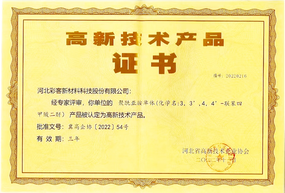 BPDA主要用于特種材料聚酰亞胺的生產(chǎn),聚酰亞胺具有突出的耐溫性能和優(yōu)異的機(jī)械性能,是目前已知耐熱性能最好的可實際大規(guī)模使用的聚合物材料,廣泛應(yīng)用于航空航天、電氣絕緣、柔性顯示、新能源、微電子等新興領(lǐng)域。